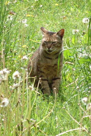 暖かな光あびて ふわふわな わたぼうし ぼくもふわふわな いい気持 春っていいにゃあ・・