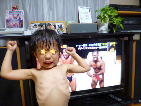 キン肉マンなお兄さんの真似をする5歳のソーマ