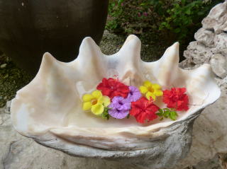 サンゴの石垣は花も似合います