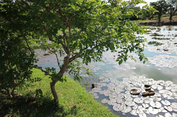 広い緑の敷地内には 池の周りに 水牛やアヒルや ヤギ カメなどがいて ミニ動物園のように なっていました エサも売っているので 人によくなれ寄ってきます