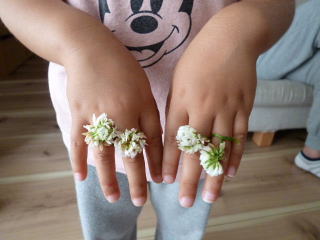 お母さんがお花の指輪を