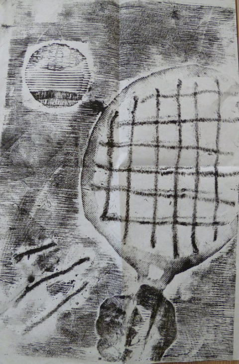 ソーくんの版画作品 テニスラケット 力強くていいなあ♪