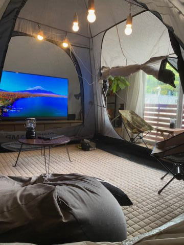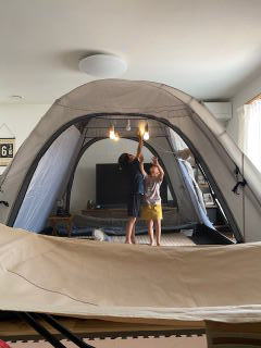 キャンプグッズは揃っているので みんなで設置 本当は
