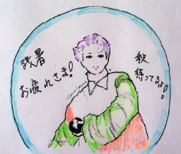 FAXで届いた 咲ちゃんうちわの絵 ぬり絵にしてみた♪ この写真を シールにして 化粧箱に 貼ってます