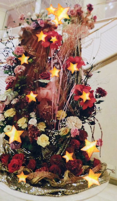 大劇場ロビーの豪華な花をツリーに・・