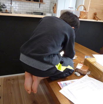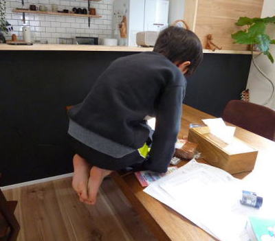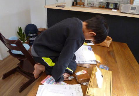ある日のソーくん 宿題をやってると うなり出し もぞもぞし あげくは テーブルの上に 乗ってしまった・・ それでもブツブツ・・ むつかしい 宿題だったのね^0^