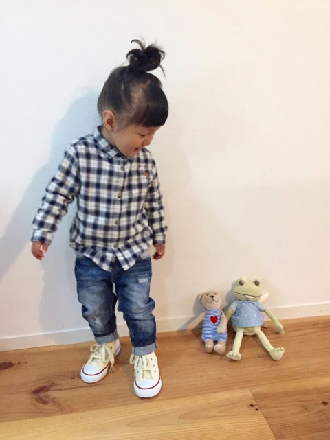 何でもソーマと一緒がいいハルヒ お洋服も兄ちゃん風で 秋冬はこういう感じかな 毎日何かと忙しいので 私はハルヒをモデルにして 写真を撮っては日々のストレス発散です